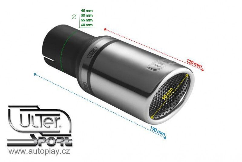 Univerzální koncovka výfuku z ušlechtilé oceli od firmy Ulter Sport zabývající se již řadu let výrobou tlumičů výfuku a koncovek.