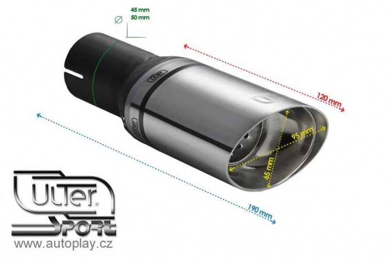 Univerzální koncovka výfuku z ušlechtilé oceli od firmy Ulter Sport zabývající se již řadu let výrobou tlumičů výfuku a koncovek.
