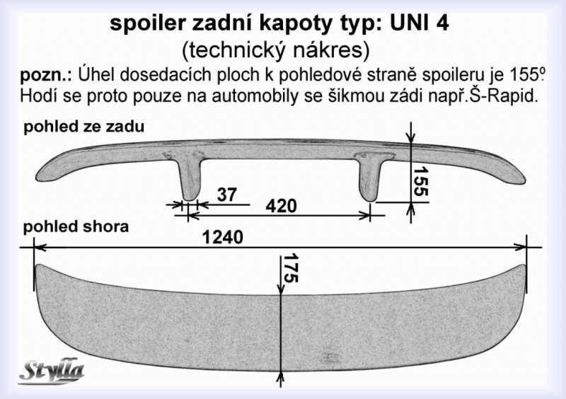 UNI 4 universální křídlo pro více typů vozů s kufrovitou zádí, rozměry dle obr.1.