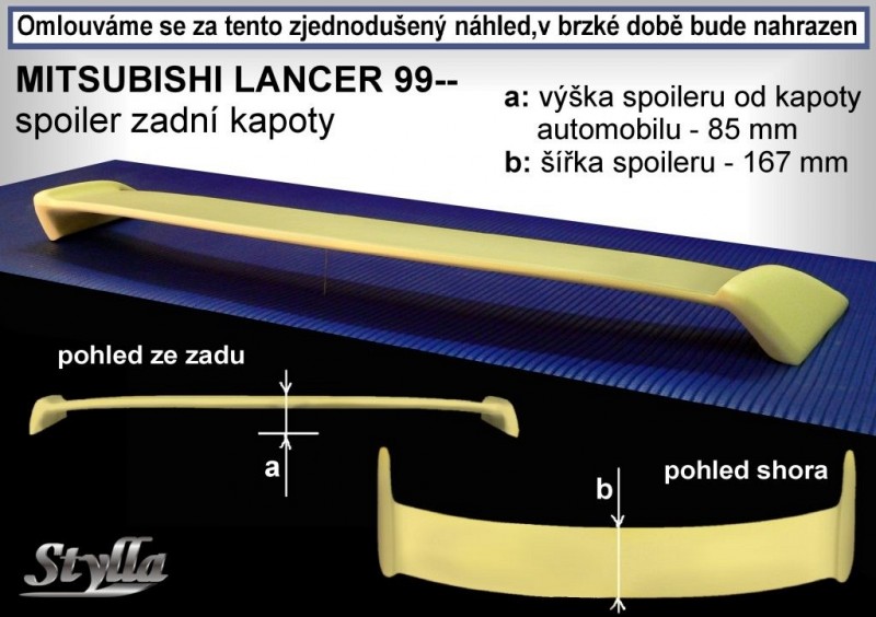 Cena za 1kus. Spoilery značky CT Tuning, patří svou kvalitou k velice dobrým. Výrobky jsou vyrobeny z laminátu a jsou již nastříkány v základním plniči. Jsou krásně vyhlazeny, což zaručuje, žádné dodatečné tmelení, či velké broušení, co také oceníte při přípravě na lakování. Spoilery značky CT Tuning, budou zkrášlovat Váš automobil po celou dobu jeho životnosti. Pokud je to technicky možné, jsou téměř všechny spoilery opatřeny k uchycení vnitřními závity M5 nebo M6 a je tedy možno je jak montovat, tak samozřejmě také lepit. Rozhodnutí je tedy na Vás, zda montáž zvolíte nalepením, montováním, nebo kombinovanou. U větších spoilerů typu WRC, ST a spoilerů s malou dosedací plochou, doporučujeme uchycení kombinované. Výrobky mají po celou dobu životnosti stálý tvar, neprohýbají se. Jsme jedni z výhradních dovozců této značky a proto zaručujeme jednu z nejnižších cen na trhu. Návod k montáži: http://www.stylla.cz/media/navod-k-montazi.pdf