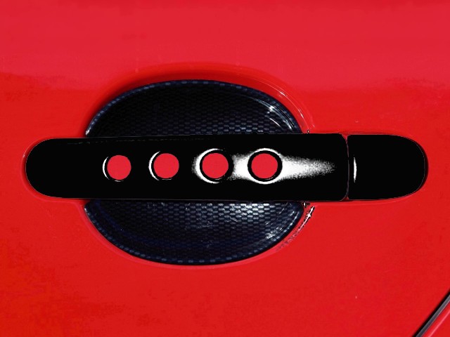 4x kryt kliky - děrovaný design z ABS černá metalíza opatřený oboustrannou pěnovou lepenkou