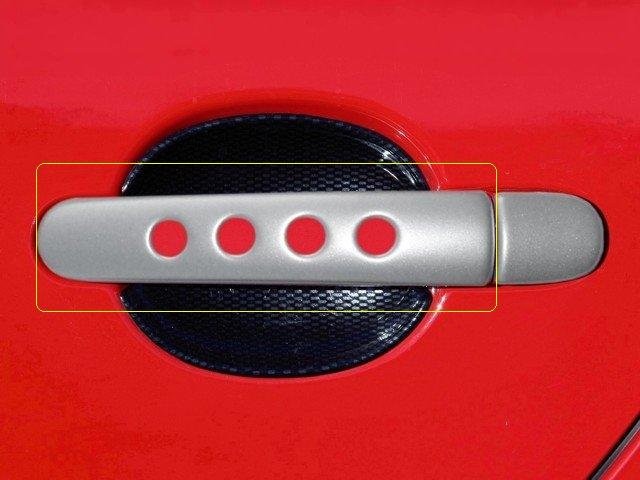 4x děrovaný kryt kliky ze stříbrného matného ABS opatřený oboustrannou pěnovou lepenkou