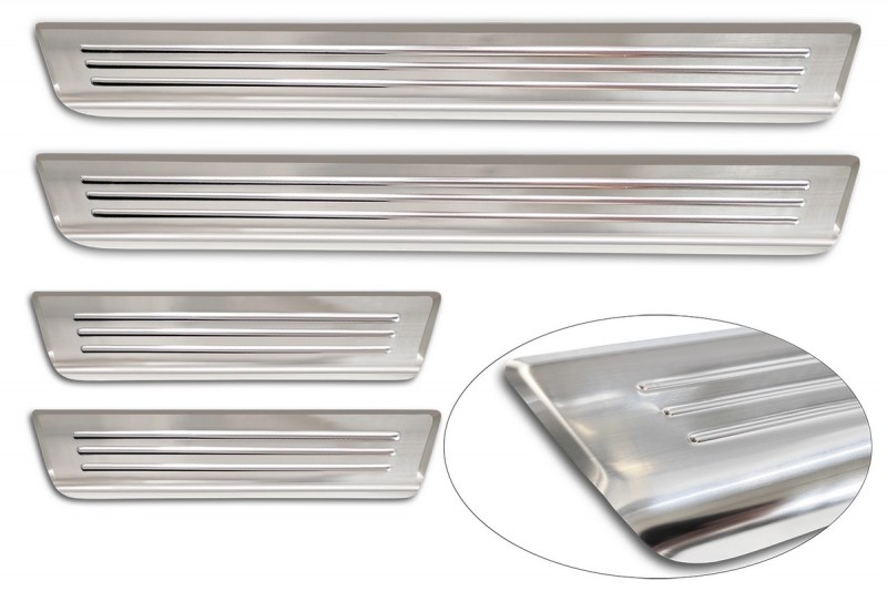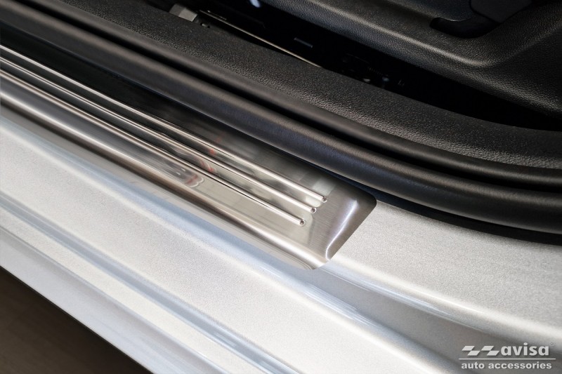 Prahové lišty vozu Škoda Kamiq jsou vyrobené z nerezové oceli. Matné. Lišty jsou odolné proti veškerým povětrnostním vlivům i vlhkosti. Spolehlivě chrání před poškrábáním a mechanickým poškozením, které vzniká používáním automobilu.