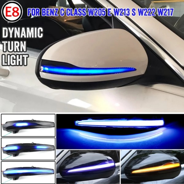 Modrý uvítací efekt je funkční pouze pro vozy ze spodním osvětlením v zrcátku se kterým je propojen přiloženým kabelem. Modrý efekt funguje pouze za šera a večer a při stojícím vozildle, při odemčení vozidla, protože je napojen na spodní osvětlení zrcátek, které svítí na základě senzorů jen za šera a večer. Modrá barva bliká + svítí cca po dobu 15-25 sekund a poté je vypnuta a nastává klasické homologované sekvenční blikání při zapnutí blinkrů samozřejmě v oranžové barvě.