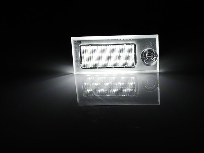 Cena za pár (2ks). Přímá výměna za seriové osvětlení SPZ s klasickými žárovkami. Místo žárovek, osvětlení obsahuje několik řad bílých ledek. Krásný bílý svit. Dlouhá životnost. Možnost napojení i pro vozidla s PC s hlídáním prasklé žárovky. Pro model sedan, audi A6 97-04. Obsahuje canbas pro odstranění chybového hlášení.