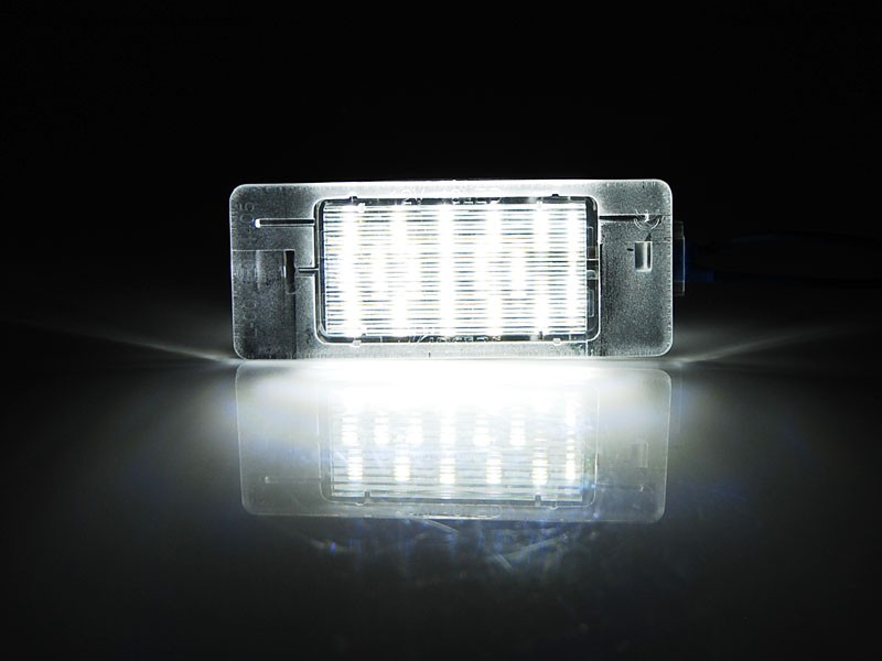 Cena za pár (2ks). Přímá výměna za seriové osvětlení SPZ s klasickými žárovkami. Místo žárovek, osvětlení obsahuje několik řad bílých ledek. Krásný bílý svit. Dlouhá životnost. Možnost napojení i pro vozidla s PC s hlídáním prasklé žárovky