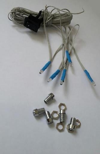 Objímky LED diod zasunume do připravených otvorů průměru asi 5-6mm v místech, kde jsme se rozhodli diody namontovat. Objímky lze zajistit přiloženou maticí, ale v čalounění drží i bez matic. Do objímek se poté vsunou led diody.