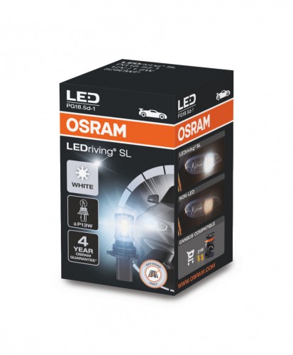 LED žárovky OSRAM do denního svícení nahrazující standartní žárovku. Náhradní žárovky LEDriving SL P13W nabízejí moderní a intenzivní světlo s teplotou chromatičnosti až 6 000 Kelvin.Tyto náhradní žárovky jsou vhodné pro všechny běžné patice žárovek P13W. Ve srovnání se standardními žárovkami spotřebují tyto LED žárovky až o 80% méně energie.