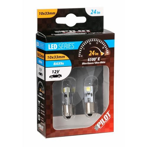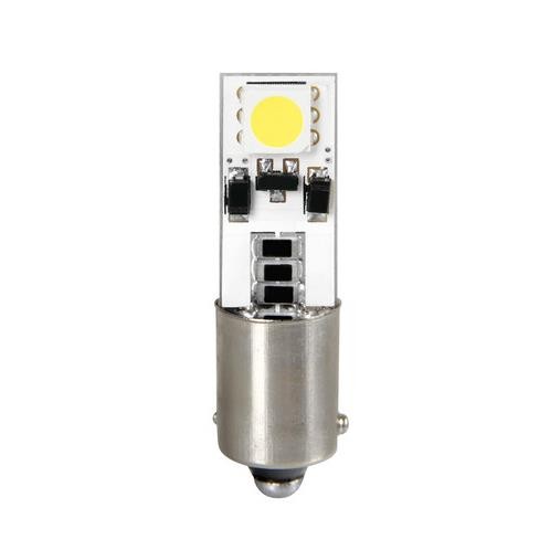 LED žárovka s paticí BAX9s, nahrazující žárovku 12V/4W s kovovou paticí BAX9s. Bílé světlo.