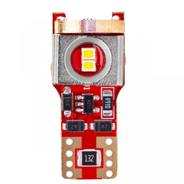 LED žárovka T10, nahrazující celoskleněnou žárovku W5W. Bílé světlo. Zesílená Al konstrukce s lepším odvodem tepla.