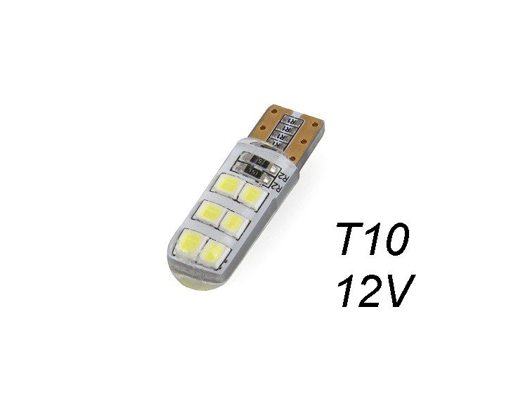 LED žárovka T10, nahrazující celoskleněnou žárovku W5W. Bílé světlo.