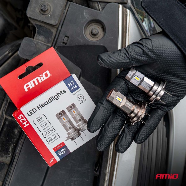 Automobilové LED žárovky H25 Series H7, H18 CANBUS 12V 30W jsou moderním zdrojem světla s vysokou světelnou účinností 2710 lm a barvou 6000K (studená bílá). Využívají diody CSP nové generace, které zajišťují stabilní světelný tok a dlouhou životnost.