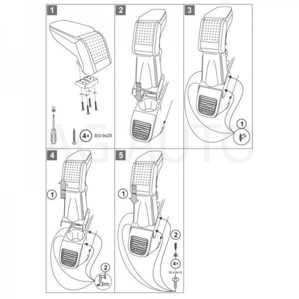 Opěrky jsou vyrobeny přesně na daný typ vozu. Montáž se provádí pomocí přiložených šroubů, přišroubováním ke středovému tunelu. Tělo opěrky je vyrobeno z velice odolného plastu s pevným kloubem. Opěrky mají zatížení až na 80kg, jsou testovány a mají certifikát ISO 9001.