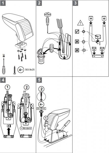 Velmi jednoduchá montáž přesně přizpůsobená danému typu vozu. Ke každému typu vozu je dodáván k opěrce daný adaptér včetně šroubků v ceně výrobku