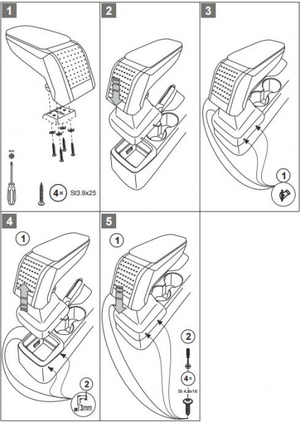Velmi jednoduchá montáž přesně přizpůsobená danému typu vozu. Ke každému typu vozu je dodáván k opěrce daný adaptér včetně šroubků v ceně výrobku