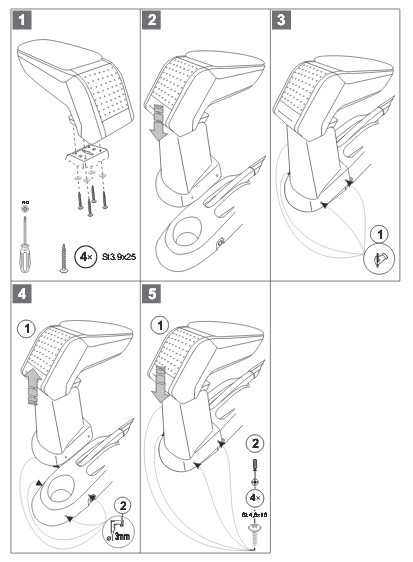 Velmi jednoduchá montáž přesně přizpůsobená danému typu vozu. Ke každému typu vozu je dodáván k opěrce daný adaptér včetně šroubků v ceně výrobku