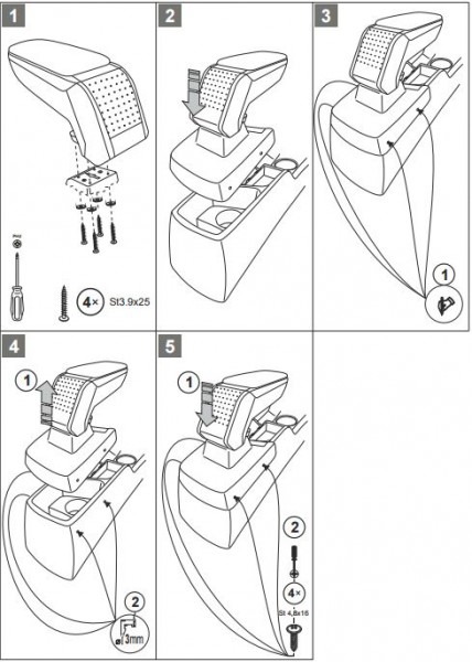 Velmi jednoduchá montáž přesně přizpůsobená danému typu vozu. Ke každému typu vozu je dodáván k opěrce daný adaptér včetně šroubků v ceně výrobku