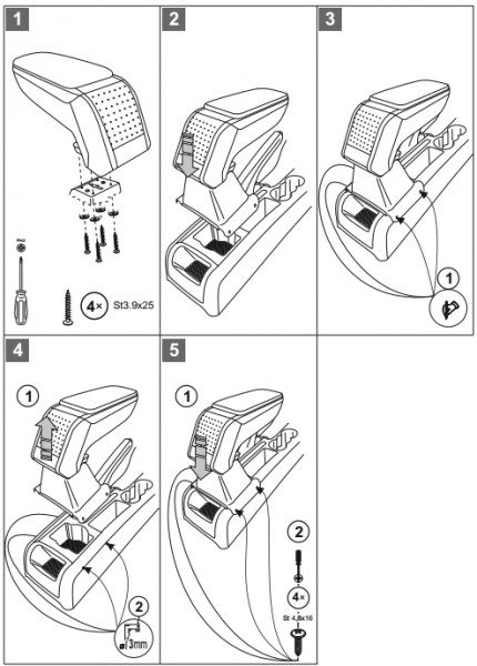 Velmi jednoduchá montáž přesně přizpůsobená danému typu vozu. Ke každému typu vozu je dodáván k opěrce daný adaptér včetně šroubků v ceně výrobku