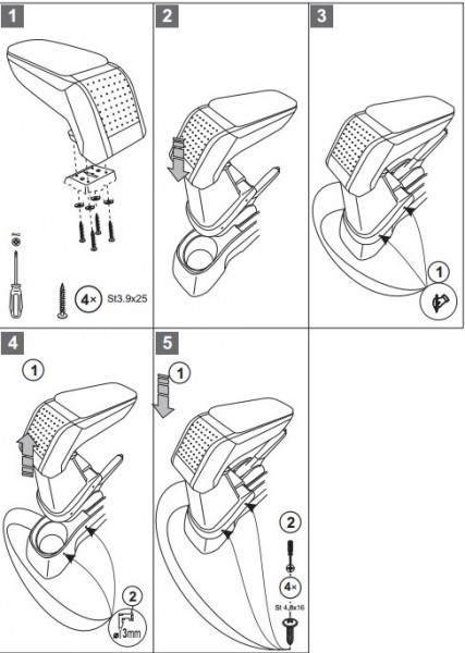 Velmi jednoduchá montáž přesně přizpůsobená danému typu vozu. Ke každému typu vozu je dodáván k opěrce daný adaptér včetně šroubků v ceně výrobku