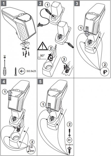 Opěrky jsou vyrobeny přesně na daný typ vozu. Montáž se provádí pomocí přiložených šroubů, přišroubováním ke středovému tunelu. Tělo opěrky je vyrobeno z velice odolného plastu s pevným kloubem. Horní otevírací část je potažena měkkou omyvatelnou koženkou. Vnitřní část je potažena flockem, nebo semišem.