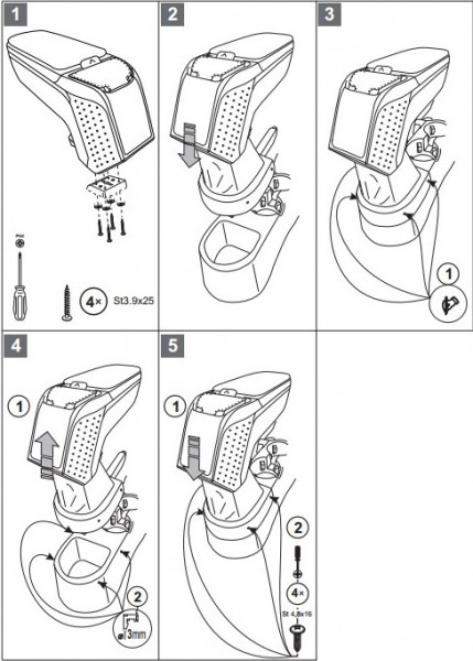 Opěrky jsou vyrobeny přesně na daný typ vozu. Montáž se provádí pomocí přiložených šroubů, přišroubováním ke středovému tunelu. Tělo opěrky je vyrobeno z velice odolného plastu s pevným kloubem. Horní otevírací část je potažena měkkou omyvatelnou koženkou. Vnitřní část je potažena flockem, nebo semišem.
