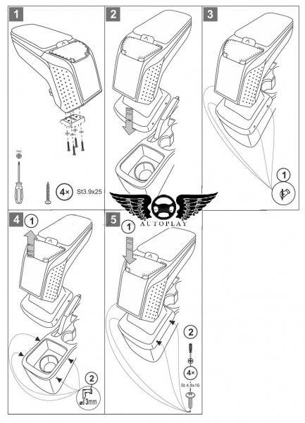 Opěrky jsou vyrobeny přesně na daný typ vozu. Montáž se provádí pomocí přiložených šroubů, přišroubováním ke středovému tunelu. Tělo opěrky je vyrobeno z velice odolného plastu s pevným kloubem. Horní otevírací část je potažena měkkou omyvatelnou koženkou. Vnitřní část je potažena flockem, nebo semišem.