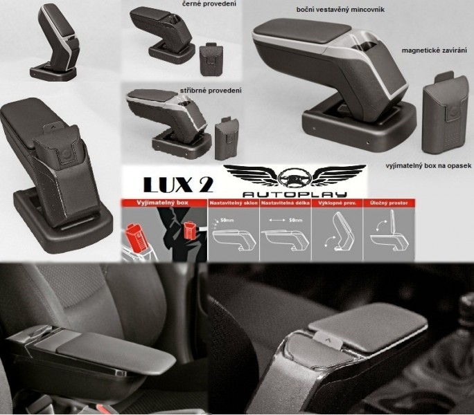 Oproti běžné opěrce standart mají horní část na kolejnici, což umožňuje posun horní části blíže k řadící páce. Navíc opěrky LUX mají několik poloh možnosti nastavení výšky. Opěrka LUX se dá sklopit celou horní částí, mezi opěradla předních sedadel a tím uvolní místo mezi předními sedačkami. Navíc kloub opěrky je vyroben z kovu, tedy je dostatečně pevný. Zavírání opěrky je magnetické, tedy nehrozí žádné odlomení záklapky, jako u levných opěrek.