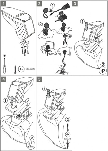 Opěrky jsou vyrobeny přesně na daný typ vozu. Montáž se provádí pomocí přiložených šroubů, přišroubováním ke středovému tunelu. Tělo opěrky je vyrobeno z velice odolného plastu s pevným kloubem. Horní otevírací část je potažena měkkou omyvatelnou koženkou. Vnitřní část je potažena flockem, nebo semišem.
