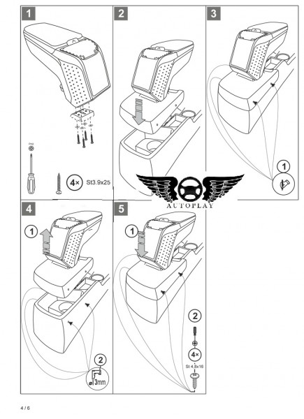 Opěrky jsou vyrobeny přesně na daný typ vozu. Montáž se provádí pomocí přiložených šroubů, přišroubováním ke středovému tunelu. Tělo opěrky je vyrobeno z velice odolného plastu s pevným kloubem. Horní otevírací část je potažena měkkou omyvatelnou koženkou. Vnitřní část je potažena flockem, nebo semišem.