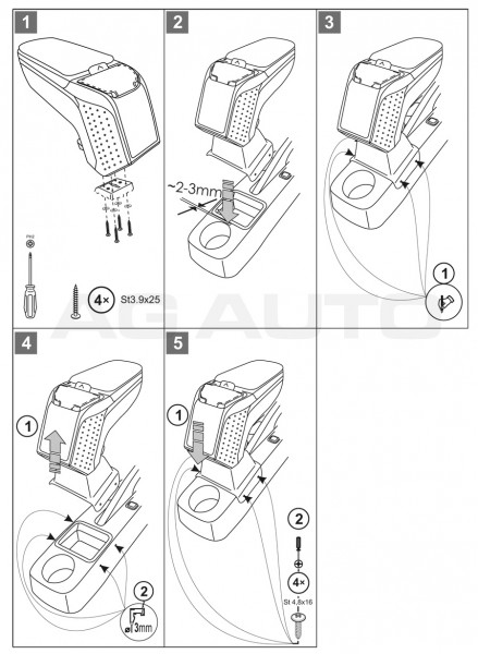 Opěrky jsou vyrobeny přesně na daný typ vozu. Montáž se provádí pomocí přiložených šroubů, přišroubováním ke středovému tunelu. Tělo opěrky je vyrobeno z velice odolného plastu s pevným kloubem. Horní otevírací část je potažena měkkou omyvatelnou koženkou. Vnitřní část je potažena flockem, nebo semišem.