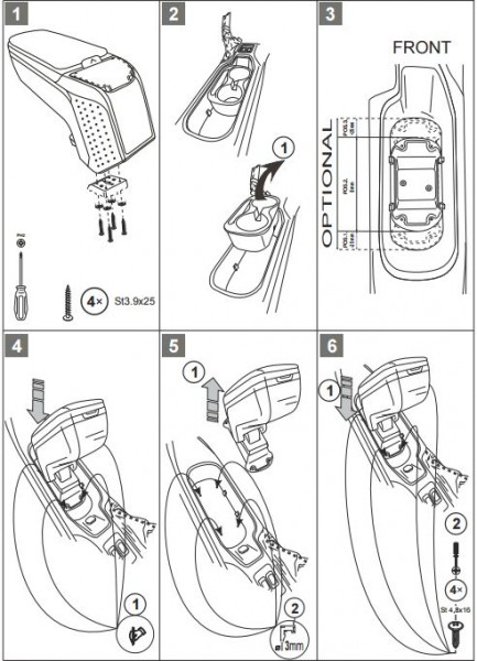 Opěrky jsou vyrobeny přesně na daný typ vozu. Montáž se provádí pomocí přiložených šroubů, přišroubováním ke středovému tunelu. Tělo opěrky je vyrobeno z velice odolného plastu s pevným kloubem. Horní otevírací část je potažena měkkou omyvatelnou koženkou. Vnitřní část je potažena flockem, nebo semišem.
