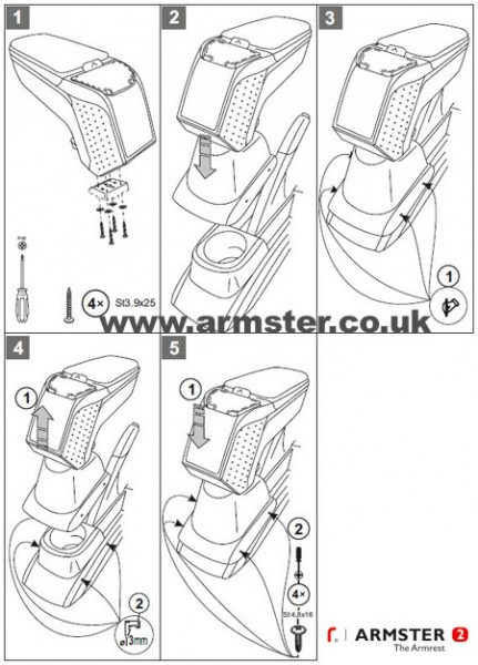 Opěrky jsou vyrobeny přesně na daný typ vozu. Montáž se provádí pomocí přiložených šroubů, přišroubováním ke středovému tunelu. Tělo opěrky je vyrobeno z velice odolného plastu s pevným kloubem. Horní otevírací část je potažena měkkou omyvatelnou koženkou. Vnitřní část je potažena flockem, nebo semišem.