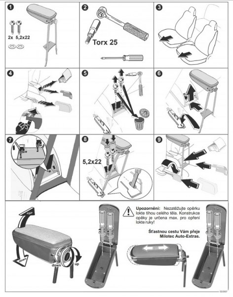 + jednoduchá montáž bez vrtání, připevněno na vodících lištách sedadel