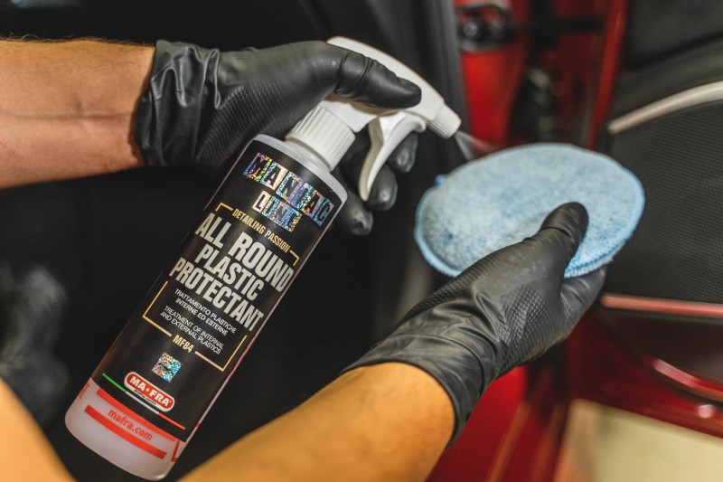 Před ošetřením vnějších plastových a pryžových dílů povrch omyjte přípravkem APC a osušte čistou mikrovláknovou utěrkou. Nezředěný přípravek naneste mikrovláknovým padem a v případě porézních nebo vybledlých plastů postup opakujte po jedné hodině, abyste získali homogenní povrch.