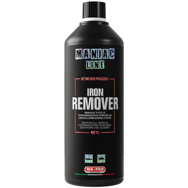 Přípravek „MANIAC - odstraňovač železa“ odstraňuje kontaminaci z oxidu železa, jako je odolně usazený brzdový prach a železné částice vzniklé třením na železničních nebo tramvajových kolejích a průmyslovým znečištěním a znečištěním na silnicích nebo staveništích. Doporučujeme používat přípravek „MANIAC - odstraňovač železa“ vždy, když je karoserie matná nebo hrubá na dotek a pokud disky kol po umytí vykazují malé tečky nebo skvrny. Pro dosažení nejlepších výsledků použijte kartáč vhodný pro ošetřovaný povrch.