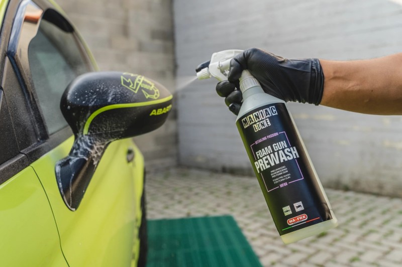 Ne, protože v této fázi se chystáte uvolnit z povrchu hrubé nečistoty, a to i silně ukotvené nečistoty. Nechte přípravek působit a využijte jeho chemického působení. Poté, co jej opláchnete, můžete přistoupit k důkladnému umytí vozu houbou, rukavicí a kartáčem pro umytí těch nejobtížnějších míst a prvků, jako jsou emblémy nebo mřížky.