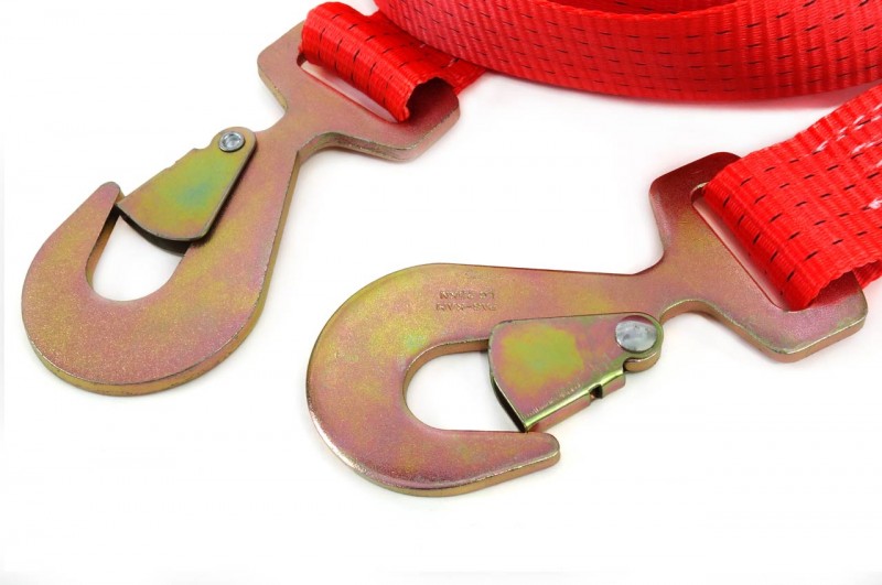 Masivní tažný popruh s karabinami pro tažení vozidel až do 4500kg.
