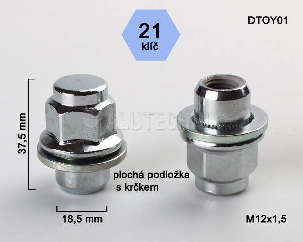 Kolové matice kromě pojistných mají šestihran na klíč 21mm a závit 12x1,5. Průměr krčku 18,5mm a celkovou výšku 37,5mm.