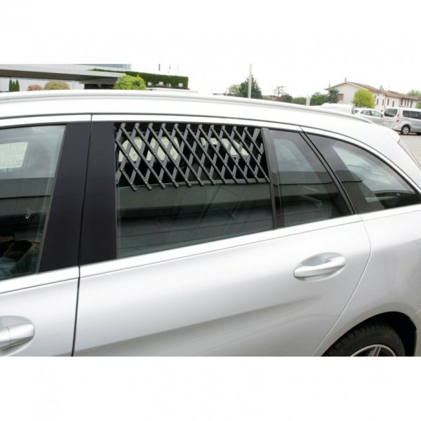 Univerzální větrací, skládací mřížka určená do okna automobilu zadních dveří, vhodná například při převozu pejska. Umožňuje vstup čerstvého vzduchu do prostoru pro cestující a zabraňuje tomu, aby pejsek vystrčil hlavu z okna. Montáž mřížky nevyžaduje nářadí. Jednoduše se vloží do prostoru okna a okno se přivře. Hodí se pro většinu automobilů. Rozložení mřížky je 8 žeber a přibližné rozměry jsou 42 x 20 cm.