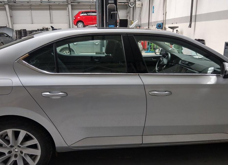 sada (8ks) nerezových lišt na spodní hranu oken dveří pro Škoda Superb III 5dv. liftback, od r.v. 2015->