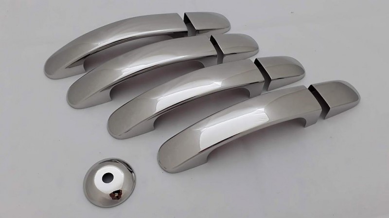 nerez - chrom kryty klik dveří pro Ford Transit Custom - 4dveř. verze, od. r.v. 2013-> (sada 9ks)