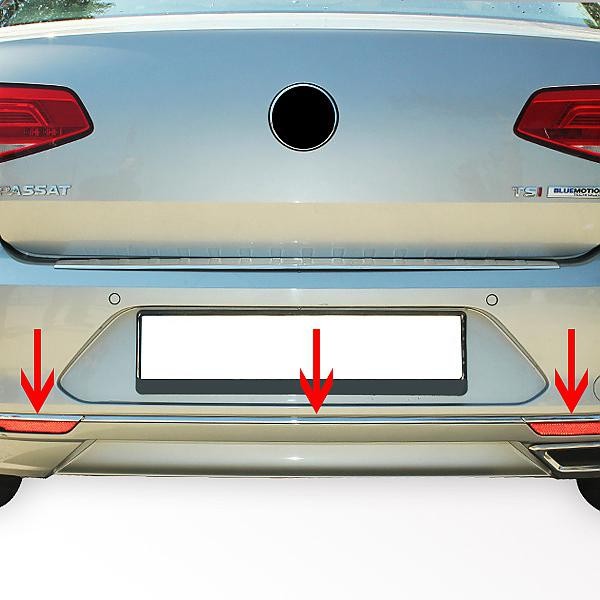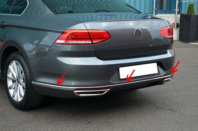 sada (3ks) nerezových lišt na zadní nárazník pro Volkswagen Passat B8 sedan / kombi (variant), r.v. 2015-2019