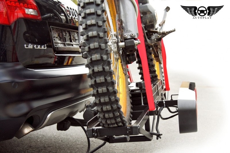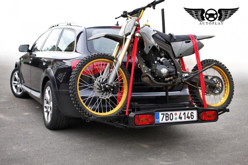 Nosič na crossovou motorku s vlastní nájezdovou rampou a upínacími popruhy je určen pro motorky do 100 kg. Samotný nosič váží 23 kg. Rozměry činí 1720x575 mm.