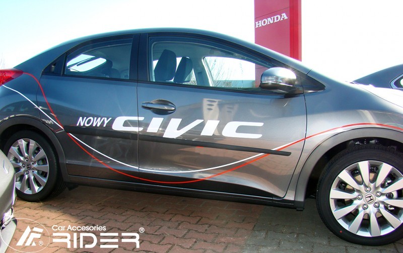 Odtrhněte z lišty barevné ochranné pásky, přiložte na naměřené body a lepte od hrany dveří pod středovým sloupkem směrem k nárazníkům. Po nalepní dokonale lištu přitiskněte rukou po celé ploše ať se ujistíte, že lišta je dobře přilepená ve všech místech.