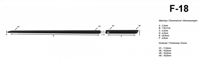 Cena za sadu 4ks bočních lišt. Materiál, velice lehký poliuretan, který z vnitřní strany obsahuje oboustranou lepící pásku 3M pro montáž nalepením. Lišty neobsahují kovové výstuhy, takže nedochází ke korozi. Jednoduchá montáž nalepením. Barevná stálost. Certifikát TuV.