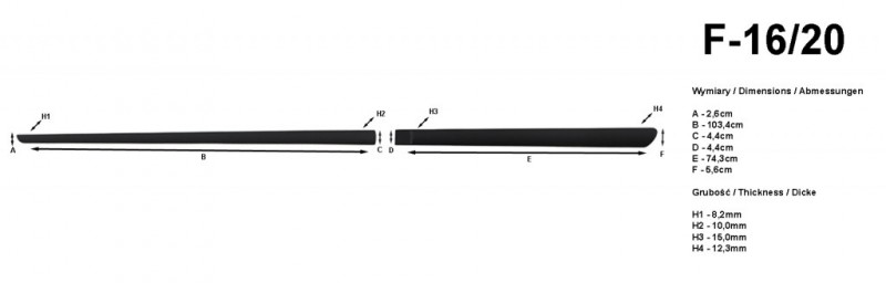 Cena za sadu 4ks bočních lišt. Materiál, velice lehký polyuretan, který z vnitřní strany obsahuje oboustranou lepící pásku 3M pro montáž nalepením. Lišty neobsahují kovové výstuhy, takže nedochází ke korozi. Jednoduchá montáž nalepením. Dokonalá ochrana proti poškrábání dveří a důlků při stání na parkovištích apd.