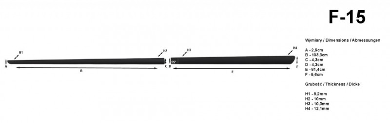 Cena za sadu 4ks bočních lišt. Materiál, velice lehký poliuretan, který z vnitřní strany obsahuje oboustranou lepící pásku 3M pro montáž nalepením. Lišty neobsahují kovové výstuhy, takže nedochází ke korozi. Jednoduchá montáž nalepením. Barevná stálost. Certifikát TuV.