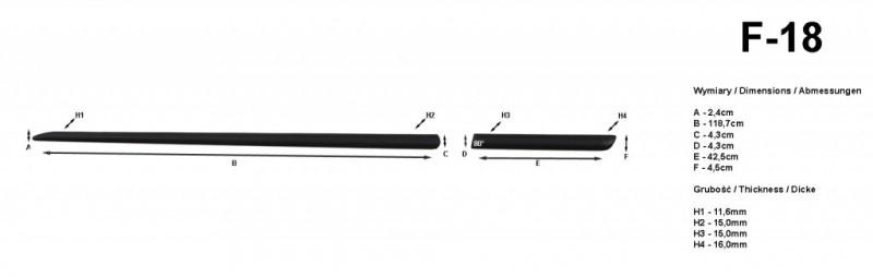 Cena za sadu 4ks bočních lišt. Materiál, velice lehký poliuretan, který z vnitřní strany obsahuje oboustranou lepící pásku 3M pro montáž nalepením. Lišty neobsahují kovové výstuhy, takže nedochází ke korozi. Jednoduchá montáž nalepením. Barevná stálost. Certifikát TuV.