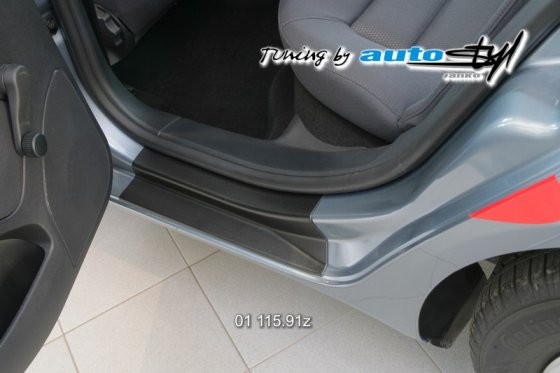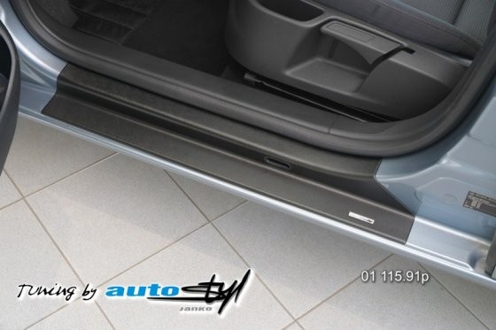 Cena za celou sadu 4ks. Tento chytrý doplněk zabrání odírání laku na prazích bočních dveří, především při nastupování a vystupování z vozu. Perfektně pasující, přesně vytvarované kryty prahů jsou vyrobeny z drsného ABS plastu v černém provedení. Montáž se provádí jednoduchým nalepením na instalovanou pásku. Výrobek má atest 8SD.