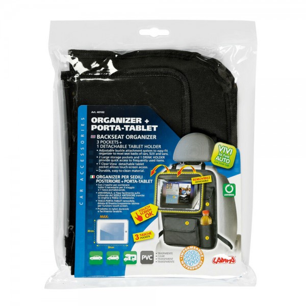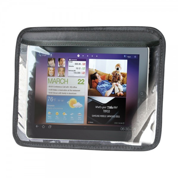 - Navíc je kapsa pro tablet odnímatelná na suchý zip a tak může být tablet stále krytý i mimo vůz.